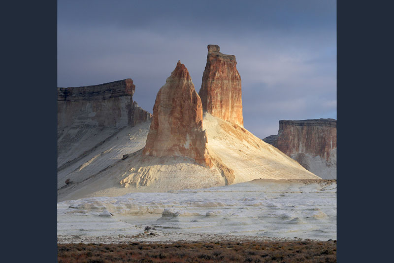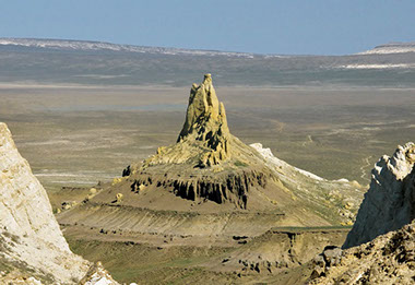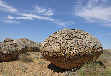 The landscape of Mangystau is very unique. The territory of Mangystau was the bottom of the Tethys and Protocaspian oceans for many hundreds of millions of years. Around 8 million years ago, the vast Turan plate began to rise, getting free from the depths of the sea. Retreating waters washed away soft rocks, creating chalky cuestas, canyons, bizarre outlier mountains and depressions. Wind and rain streams completed the magnificent creation of Nature. That is how the ledges of the North and South Aktau, the legendary Mount Sherkala, the valley of the Ayrakty-Shomanay castles, the unique fields of spherical stones, the boundless salt marshes of Kenderlisor, Tuzbair and Karashek, one of the deepest depressions in Asia -Karakiya, the sandy massifs of Bostankum and Bazankumi , picturesque Bozzhira and Elshibek, beach lagoons and rocky shores of the Caspian sea were created.